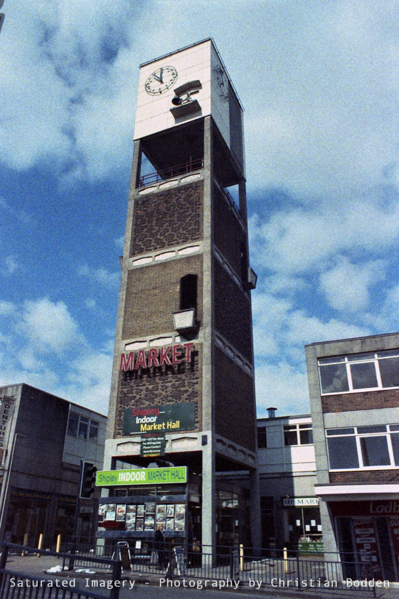 Shipley Market Tower – Praktica TL-5B with Vivitar 28mm f/2.5 and Adox Color Implosion (Corrected in Photoshop)