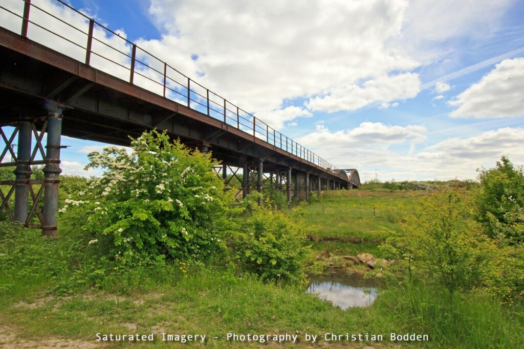 At the western edge of Fairburn Ings and old railway bridge once bearing the Bowers Row Open Cast Branch connecting the line at Garforth, and lines into St Aidan’s Colliery. It’s possible to walk some of the old line.