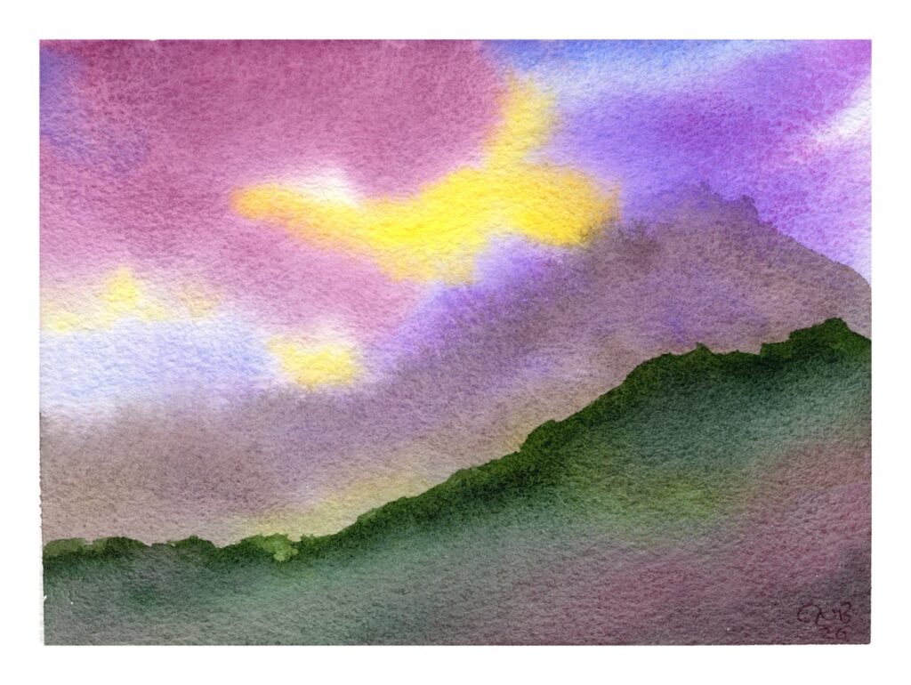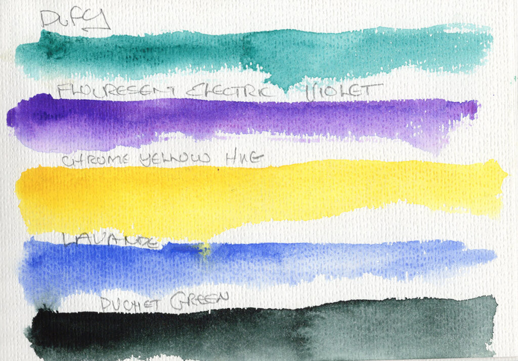 Though I have made my own Neon Pink, and experimented with the Culture Hustle colouriest colours, I don’t tend to use flouro much in my work (though I have a few ideas brewing that may change this) but I was interested in what Wallace Seymour made of these, as fluoro is not often something that one finds in higher end materials. This purple also looked useful for skies – adding just a little extra into the mix. To be fair it is not bombasticly fuorescent, and as you’ll see below is a very useful purple – though with anything fluoro, lightfastness needs to be considered.
