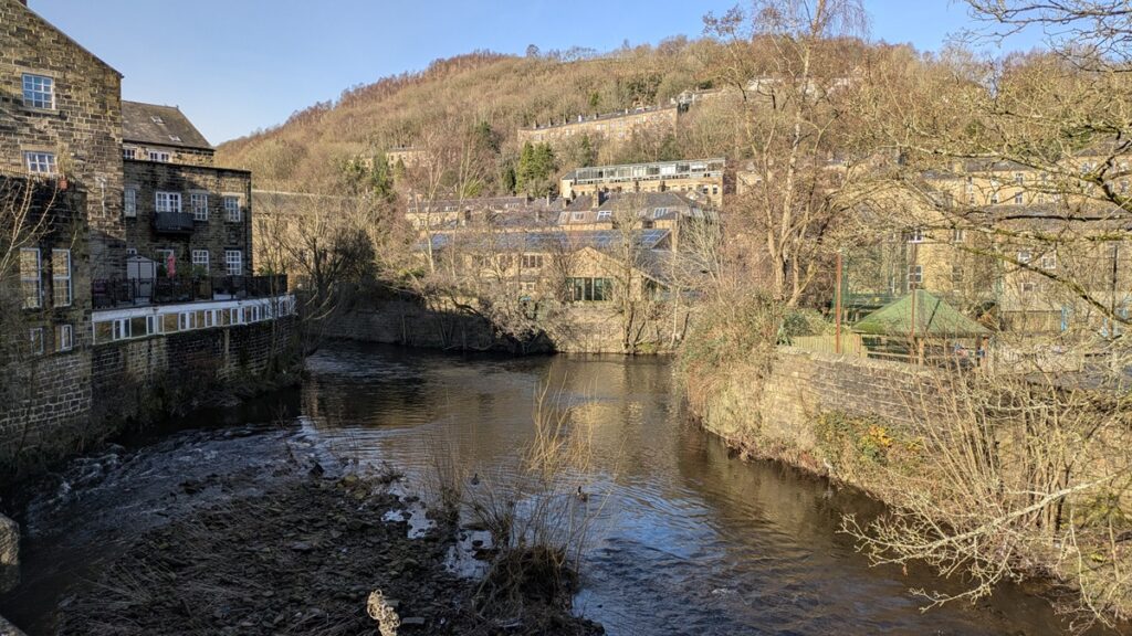 I actually meant to take my camera this time, but due to certaain faffing about involving teenagers before leaving I managed to forget, but heres just a few phone pictures to show how lovely the weather actually was, and as I do plan to paint some works based on Hebden Bridge soon.