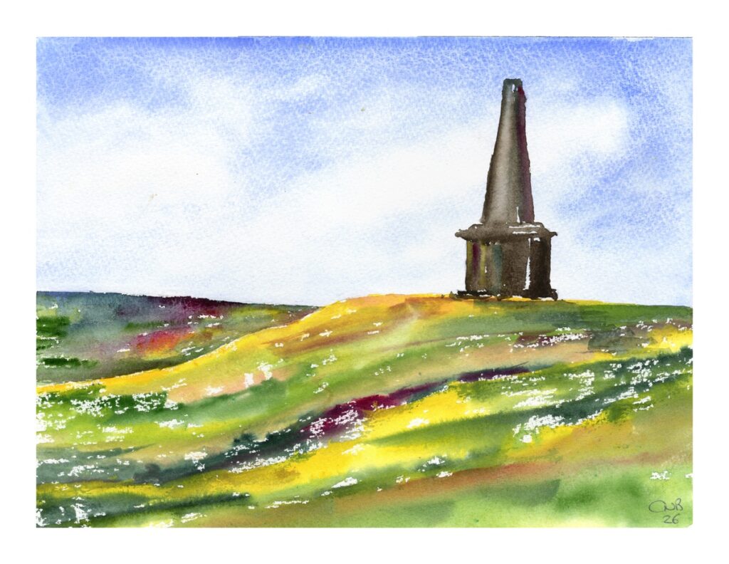 Inspired by these colours and Calderdale itself, I did this little sketch of Stoodley Pike from a photo I took some time ago, using my Wllace Seymour colours extensively.