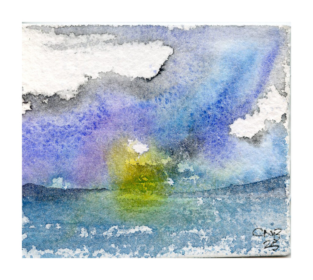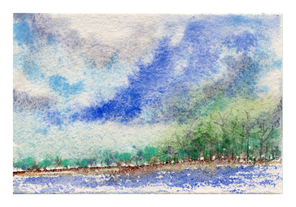 I used some of the more interesting pigments on these – Lakeside Forest involved a number of copper pigments in my own preparations. Boat on The Sea I used the YInMn blue.