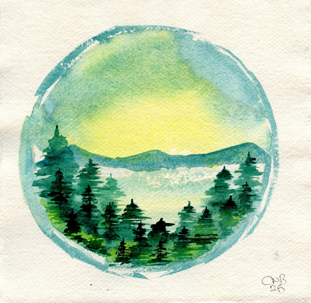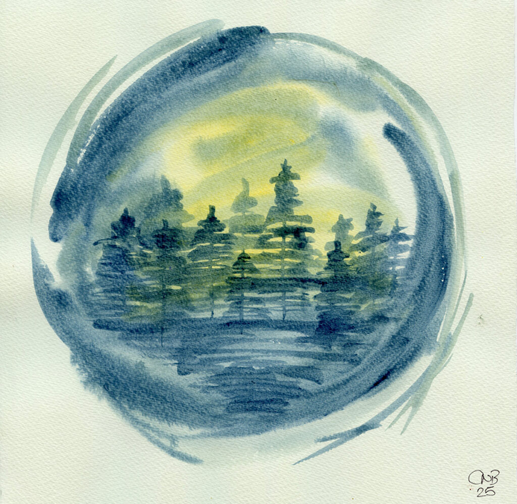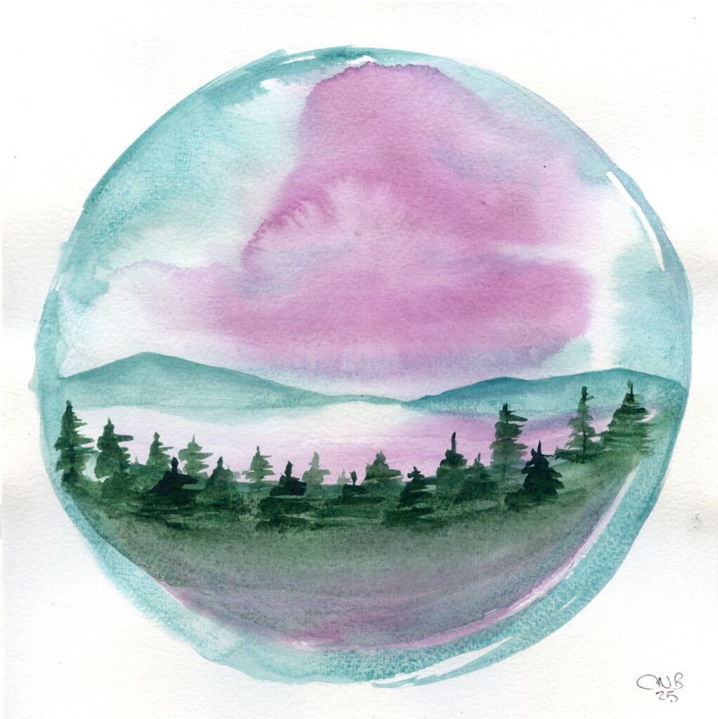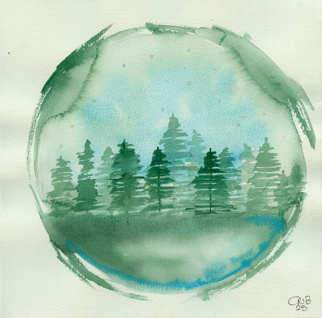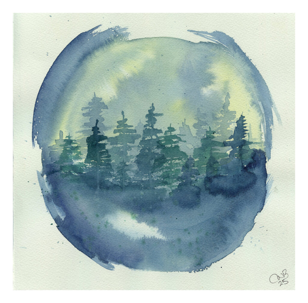 While in Hebden Bridge the other week I picked up a copy of Painting Calm by Inga Buividavice – an interesting book of watercolour ideas and techniques. In there was this globe idea which I have played with and expanded upon.